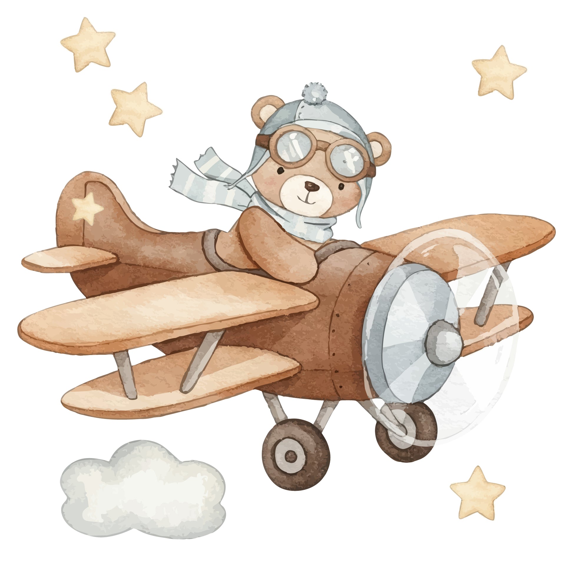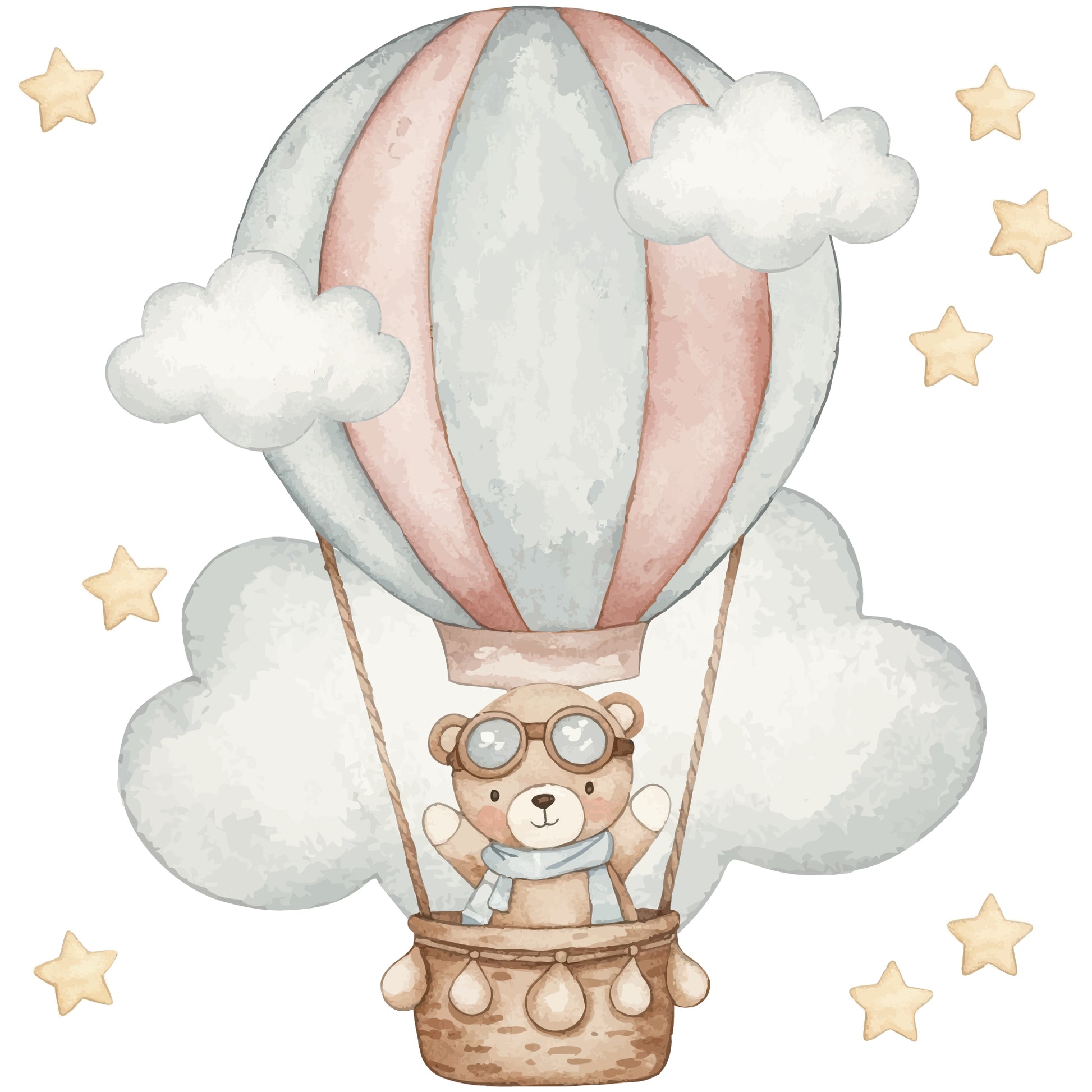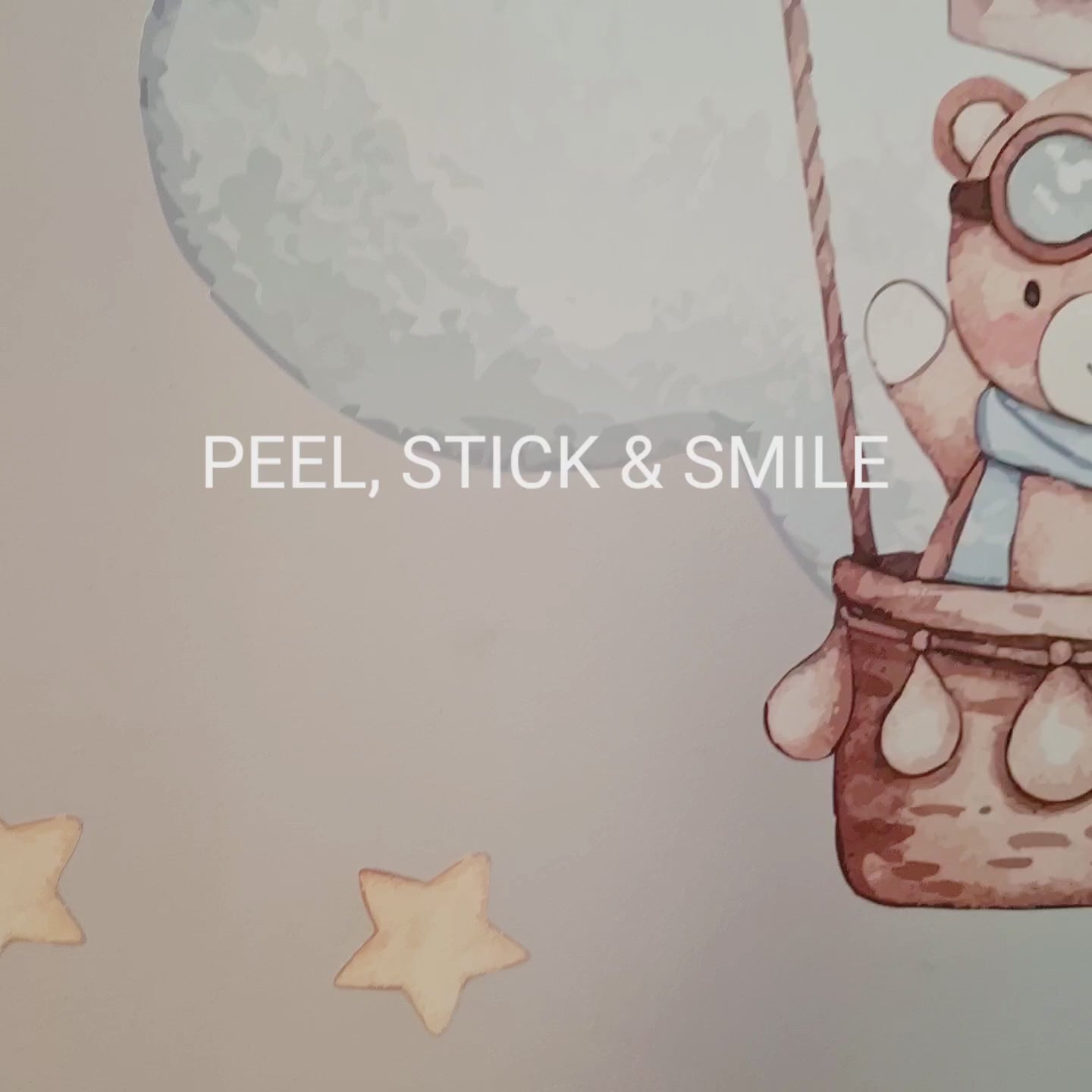 Buckle up for an adventure. Featuring a cute teddy bear soaring through the sky in his aeroplane and a cuddly bear floating through the clouds in a hot air balloon. A fun and easy way to create a feature wall in your little ones nursery room.