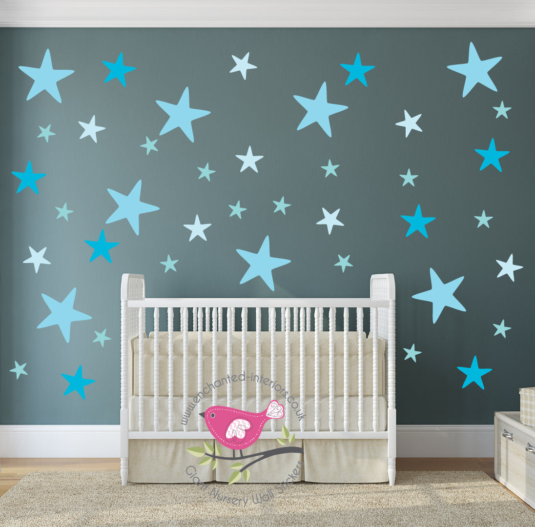 Take a nap under the night sky by creating a fun feature wall in your baby's nursery room with our large turquoise blue twinkling stars.