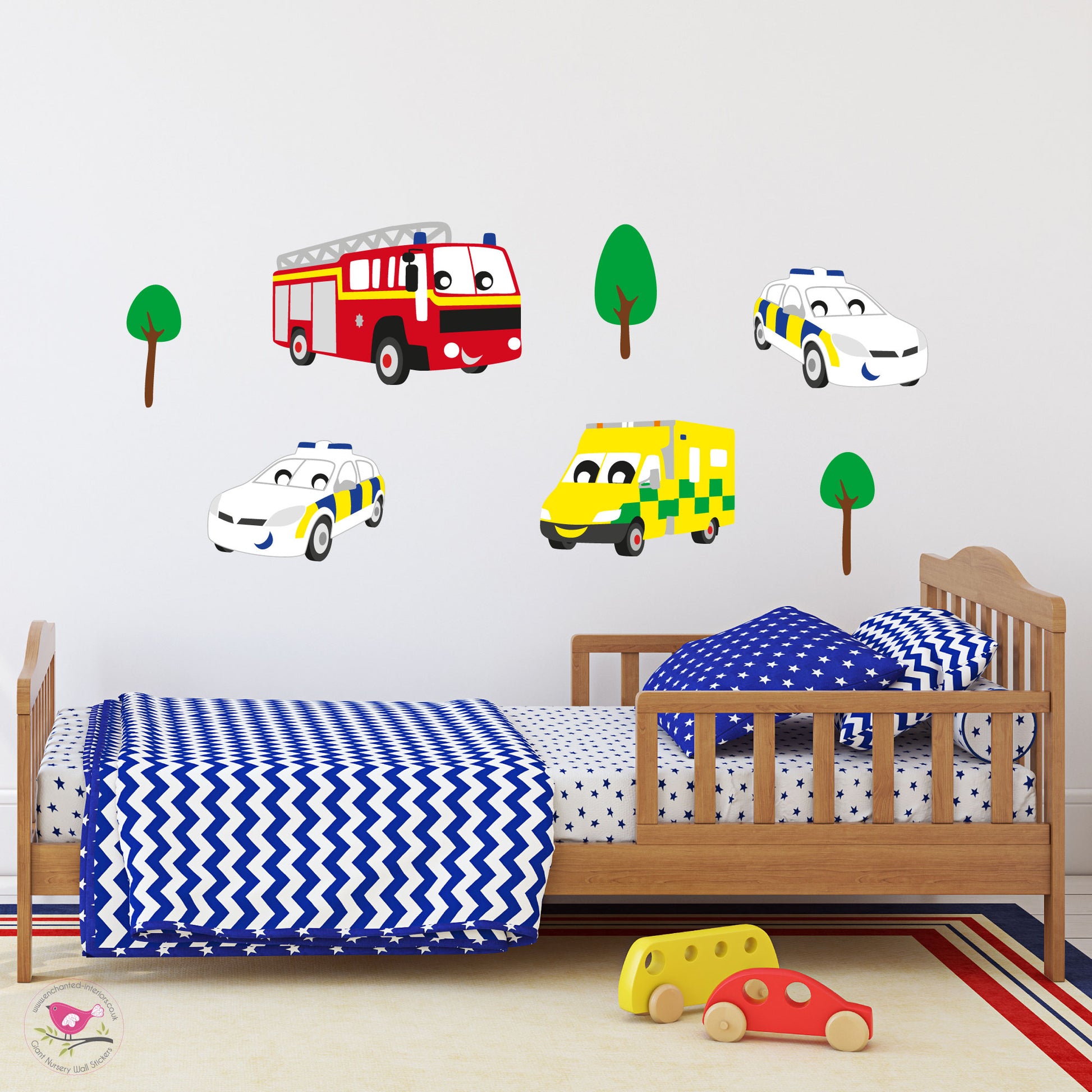Nee Nah, Nee Nah. These colourful emergency services wall stickers are perfect for brightening up a book corner or nursery room. Ideal for decorating a small area or adding together with our other sets to expand on a larger feature wall.