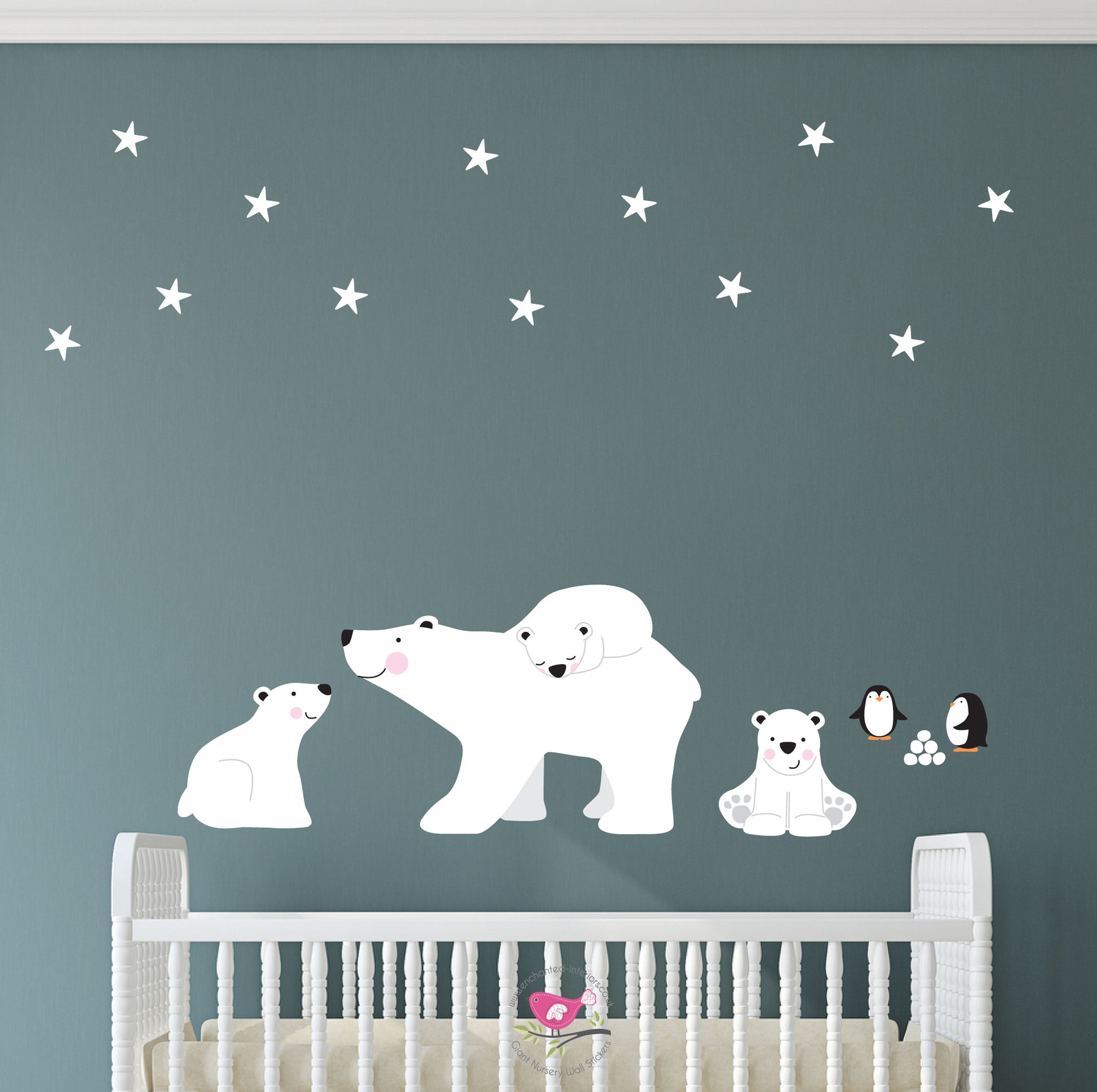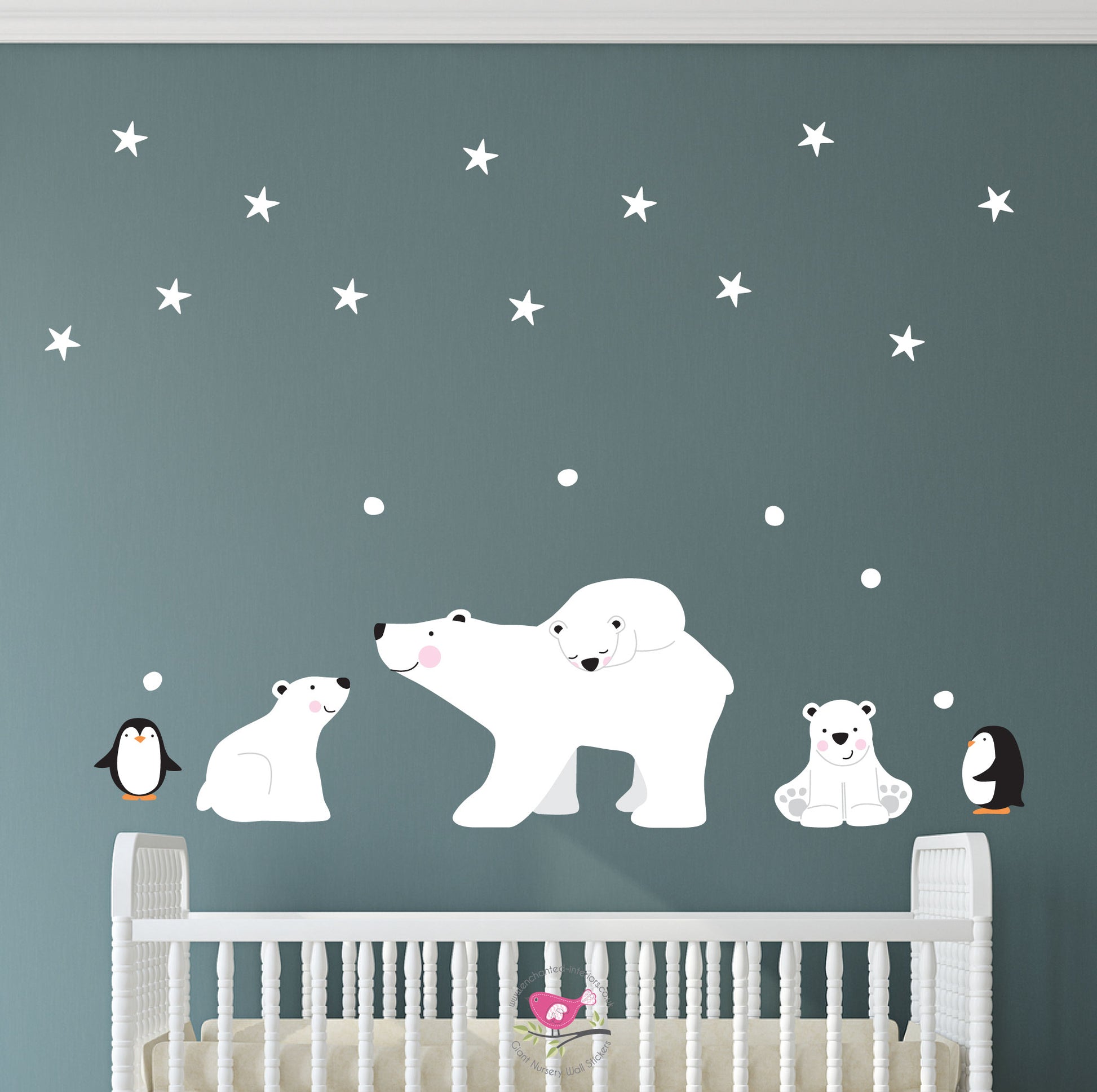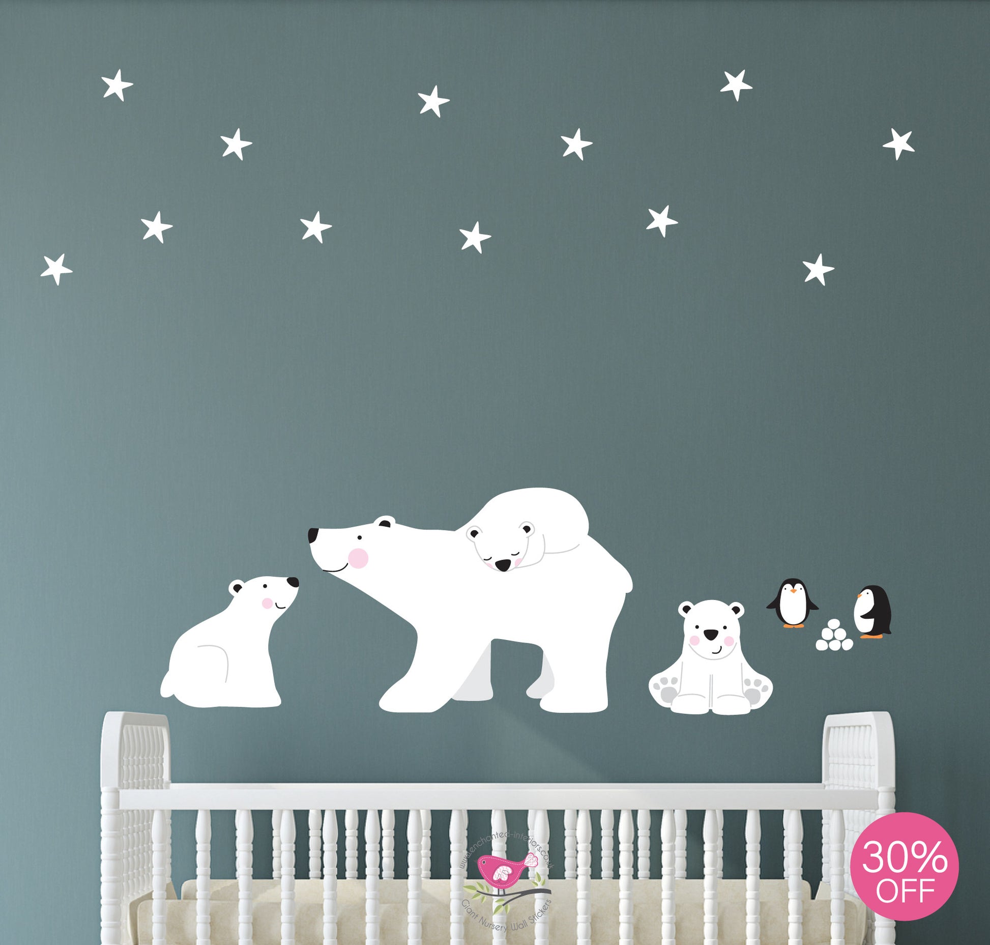 Cute polar bears and penguins nursery wall stickers. No stress, no mess, simply peel and stick to crate a magical space within hours