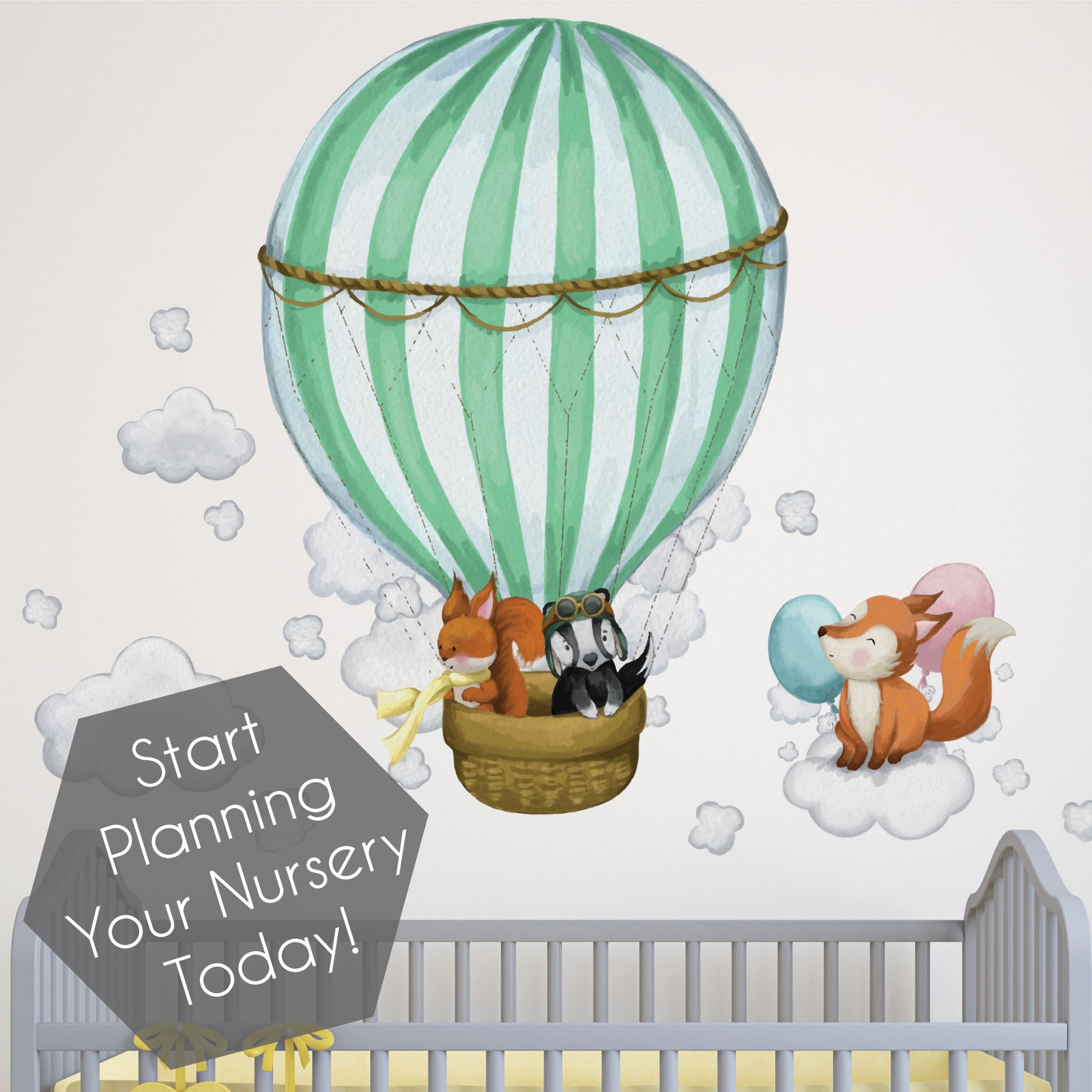 Watercolour Woodland Hot Air Balloon Wall Stickers