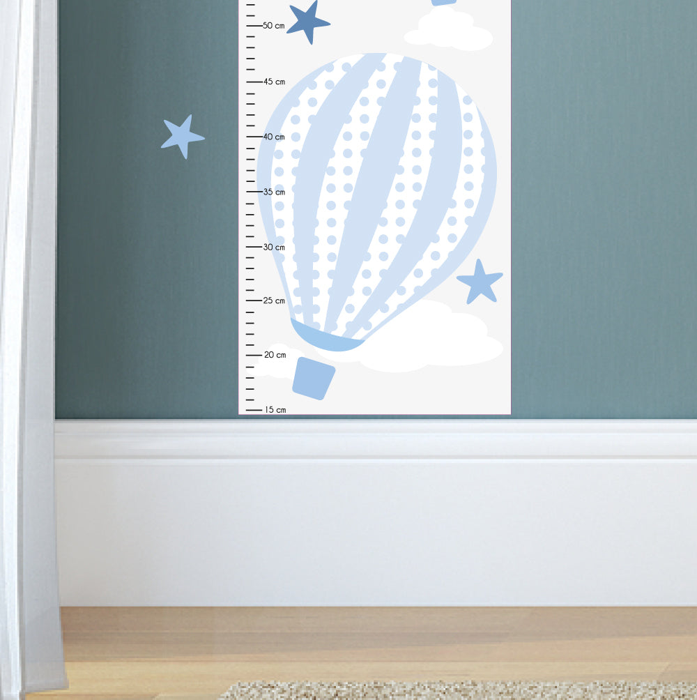 Make monitoring your little ones height fun with our baby blue hot air balloon height chart.