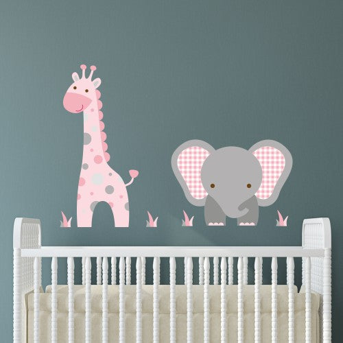 Elephant and Giraffe Jungle Wall Stickers perfect for adding to an existing set of our Jungle Wall Stickers or for ordering on their own. Available in lots of different colour schemes.