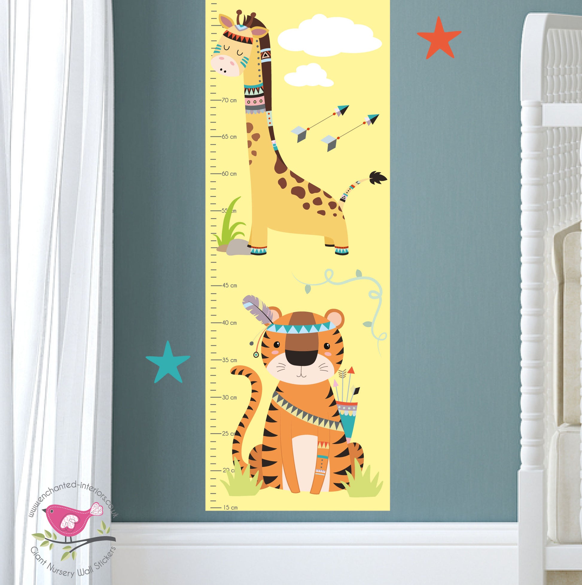 Requiring minimal time, effort or artistic flair simply peel and stick the growth chart from the backing paper and apply 15cm above the floor and your children will be able to start monitoring their growth within minutes!